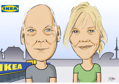 von Karikatur statt starker Verzerrung. Klassisch gezeichnet mit Stift & Papier